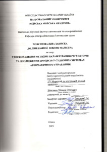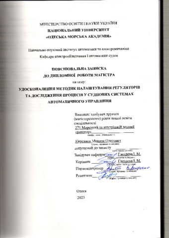 Кирсанов, Микита (2023) Удосконалення методик налаштування регуляторів та дослідження процесів у суднових системах автоматичного управління. [Кваліфікаційна (дипломна) робота]