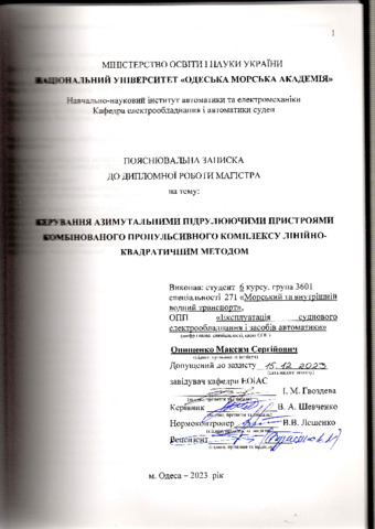 Онищенко, Максим (2023) Керування азимутальними підрулюючими пристроями комбінованого пропульсивного комплексу лінійно-квадратичним методом. [Кваліфікаційна (дипломна) робота]