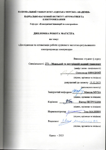 Швидкий, Олександр (2023) Дослідження та оптимізація роботи суднового частотно - регульованого електропривода компресора. [Кваліфікаційна (дипломна) робота]
