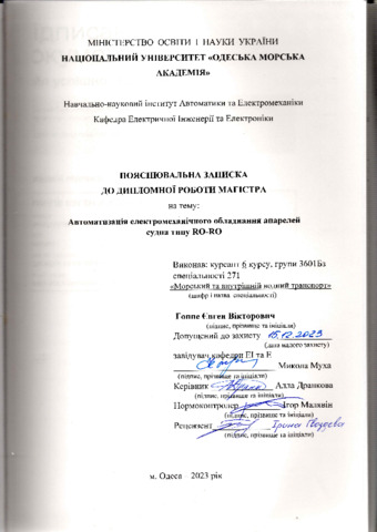 Гоппе, Євген (2023) Автоматизація електромеханічного обладнання апарелей судна типу RO-RO. [Кваліфікаційна (дипломна) робота]