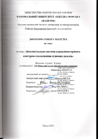 Жакота, Олександр (2023) Інтелектуальна система управління прісним контуром охолодження суднових дизелів. [Кваліфікаційна (дипломна) робота]