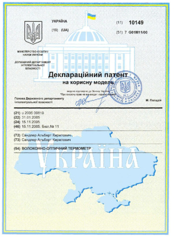 Національний університет "Одеська морська академія" (2005) Волоконно-оптичний термометр. № u200500819.
