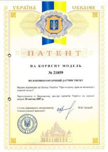 Національний університет "Одеська морська академія" (2007) Волоконно-оптичний датчик тиску. №u200610020.
