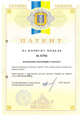 Національний університет "Одеська морська академія" (2008) Волоконно-оптичний з'єднувач. №u200610020..
