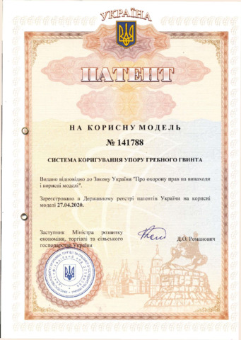 Національний університет "Одеська морська академія" (2020) Система коригування упору гребного гвинту. №u201910512.