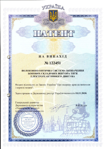 Національний університет "Одеська морська академія" (2020) Волоконно-оптична система визначення бокових складових вектора тяги електрореактивного двигуна. №a201900852.