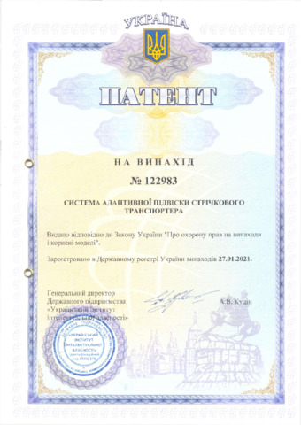 Національний університет "Одеська морська академія" (2021) Система адаптивної підвіски стрічкового транспортера. №a201810698.