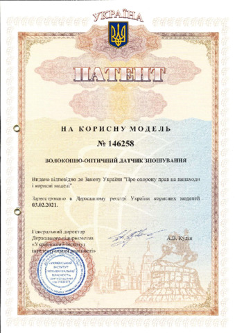 Національний університет "Одеська морська академія" (2021) Волоконно-оптичний датчик зношування. №u202005716.