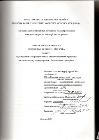 Прокопов, Владислав (2021) Дослідження електромагнітних та електромеханічних процесів у восоковольтному електроприводі підрулюючого пристрою. [Кваліфікаційна (дипломна) робота]