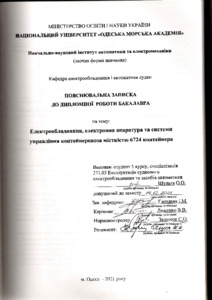 Шульга, О.О. (2021) Електрообладнання, електронна апаратура та системи управління контейнеровоза місткістю 6724 контейнера. [Кваліфікаційна (дипломна) робота]