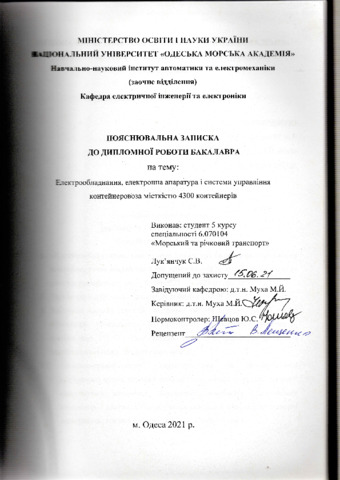 Лук’янчук ., Євген (2021) Електрообладнання, електронна апаратура та системи управління контейнеровоза місткістю 4300 контейнерів. [Кваліфікаційна (дипломна) робота]