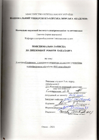 Слюсаренко, Микола (2021) Електрообладнання, електронна апаратура та системи управління контейнеровоза місткістю 4845 контейнерів. [Кваліфікаційна (дипломна) робота]