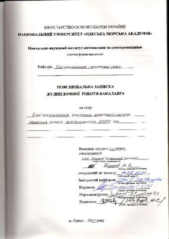 Тодоров, Михайло (2021) Електрообладнання, електронна апаратура та системи управління балкеру водотоннажністю 37200 тон. [Кваліфікаційна (дипломна) робота]