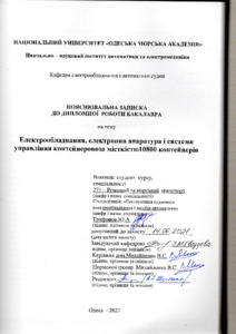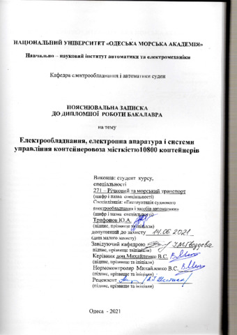 Трифонов, Юрій (2021) Електрообладнання, електронна апаратура та системи управління контейнеровоза місткістю 10800 контейнерів. [Кваліфікаційна (дипломна) робота]