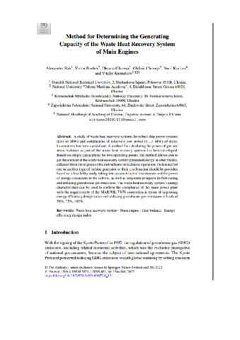 Rak, Alexander and Busher, Victor and Glazeva, Oksana and Chornyi, Oleksii and Kachan, Yurii and Kuznetsov, Vitaliy (2022) Method for Determining the Generating Capacity of the Waste Heat Recovery System of Main Engines. In: Advances in Computer Science for Engineering and Manufacturing. Springer, Cham, pp. 134-146.