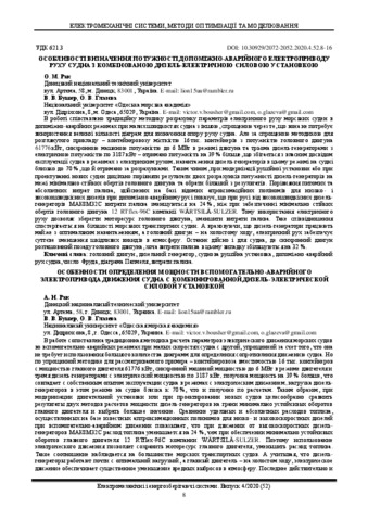 Purpose. The paper compares the traditional method of calculating the parameters of electric motion of ships in auxiliary emergency modes at low speeds of the vessel with another, simplified because it does not require the use of a large number of diagrams to determine the resistance of the vessel. But according to a simplified method for this example – a container ship with a capacity of 16,000 containers with the main engine capacity of 61776 kW, a synchronous machine with a capacity of up to 6 MW in engine mode, and three diesel generators with an electric capacity of 3187 kW – 39 % more power is obtained. Own experience of operation of the vessel in modes with electric movement – loading of diesel generators in this mode on the vessel about 70 % that is received by calculations. Thus, when upgrading the propulsion system or designing new vessels, it is advisable to compare the results of two calculations of the power of diesel generators at the limit of the minimum stable speed of the main engine and choose the larger of the results. Methodology. Comparison of specific and absolute fuel consumption, made on the basis of known approximation polynomials for low- and high-speed types of diesel of the company at auxiliary emergency movement shows that at the movement from high-speed diesel generators MAK8M32S fuel consumption decreases by 24 %, then at the maintenance of the main engine 12 RTflex-96C from WÄRTSILÄ-SULZER. Results. Therefore, the use of electric motion allows you to save engine power of the main engine, reduce fuel consumption. This ratio is observed on most maritime transport vessels. And given that diesel generators operate at almost optimal load, and the main engine – at idle, electric motion provides a significant reduction in harmful emissions into the atmosphere. The latter is also true for a ship where the synchronous engine is located behind the main engine, although fuel consumption, in this case, increases by 32 %. Figures 9, tables 6, references 15.