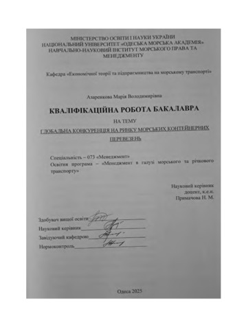 Азвренкова, Марія (2025) Глобальна конкуренція на ринку морських контейнерних перевезень. [Кваліфікаційна (дипломна) робота]