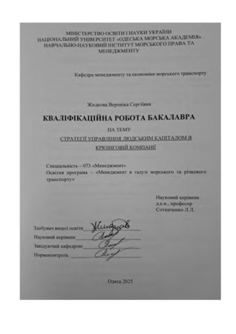 Жидкова, Вероніка (2025) Стратегії управління людським капіталом в крюінговій компанії. [Кваліфікаційна (дипломна) робота]