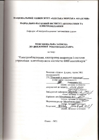 Авер’янов, Андрій (2021) Електрообладнання, електронна апаратура та системи управління контейнеровоза місткістю 6000 контейнерів. [Кваліфікаційна (дипломна) робота]