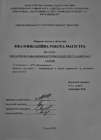 Шираєва, А.Д. (2025) Механізм впровадження штучного інтелекту в морську галузь. [Кваліфікаційна (дипломна) робота]