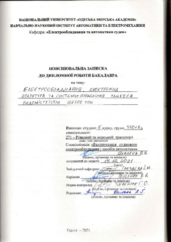 Шаблеєв, Віктор (2021) Електрообладнання, електронна апаратура та системи управління танкера водомісткістю 127000 тон. [Кваліфікаційна (дипломна) робота]