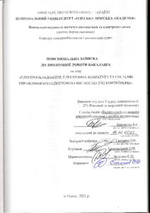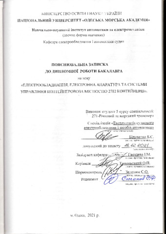 Більченко, Борис (2021) Електрообладнання, електронна апаратура та системи управління контейнеровоза місткістю 2782 контейнерів. [Кваліфікаційна (дипломна) робота]