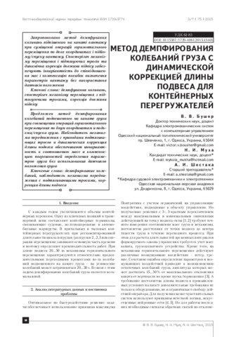 Бушер, Виктор Владимирович and Муха, Николай Иосифович and Шестака, Анатолий Иванович (2015) МЕТОД ДЕМПФИРОВАНИЯ КОЛЕБАНИЙ ГРУЗА С ДИНАМИЧЕСКОЙ КОРРЕКЦИЕЙ ДЛИНЫ ПОДВЕСА ДЛЯ КОНТЕЙНЕРНЫХ ПЕРЕГРУЖАТЕЛЕЙ. Eastern-European Journal of Enterprise Technologies, 3 (7(75)). p. 58. ISSN 1729-3774