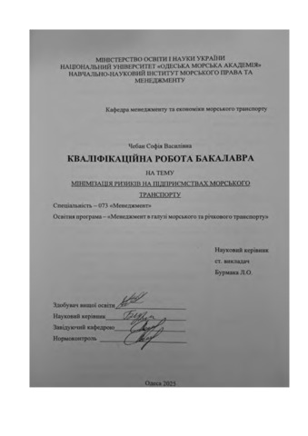 Чебан, Софія (2025) Мінімізація ризиків на підприємствах морського транспорту. [Кваліфікаційна (дипломна) робота]