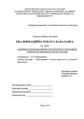Глущенко, Микита (2024) Напрямки вдосконалення стратегічного управління розвитком морських портів України. [Кваліфікаційна (дипломна) робота]
