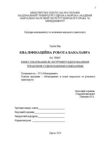 Скиба, Яна (2024) Бізнес планування як інструмент вдосконалення управління судноплавними компаніями. [Кваліфікаційна (дипломна) робота]