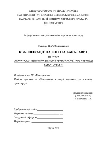 Таловиря Д.О. Обґрунтування інвестиційного проекту розвитку портової галузі України 2024.pdf