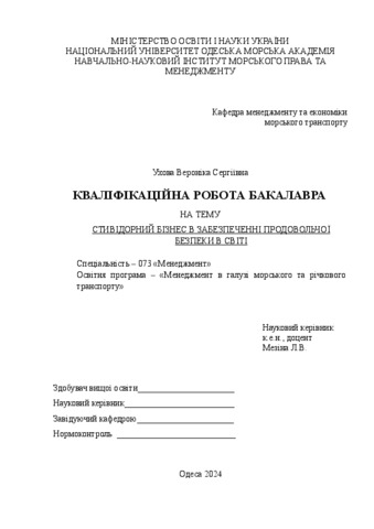 Ухова, Вероніка (2024) Стивідорний бізнес в забезпеченні продовольчої безпеки в світі. [Кваліфікаційна (дипломна) робота]