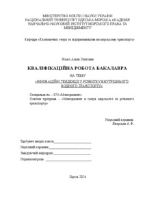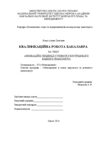 Ясько, Аліна (2024) Інноваційні тенденції у розвитку внутрішнього водного транспорту. [Кваліфікаційна (дипломна) робота]