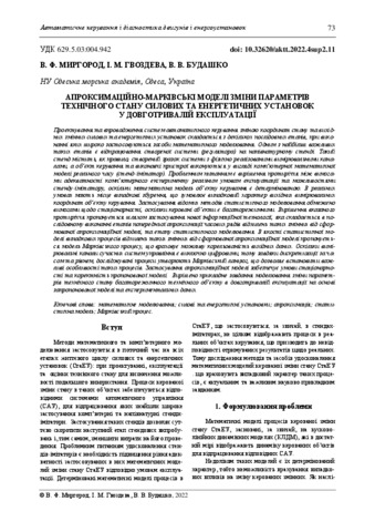 Myrhorod, Volodymyr and Gvozdeva, Iryna and Budashko, Vitalii (2022) Approximation - markov models of changes in the technical condition parameters of power and energy installations in long-term operation. Aerospace technic and technology (4sup2). pp. 73-79. ISSN 1727-7337