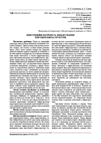 Сотниченко Л.Л., Sotnychenko L.L. and Сівань А.С., Sivan A.S. (2021) Інвестиційні потреби та фінансування портової інфраструктури = Investment needs and financing of port infrastructure. Економічний вісник Донбасу № 3(65) (3(65)).
