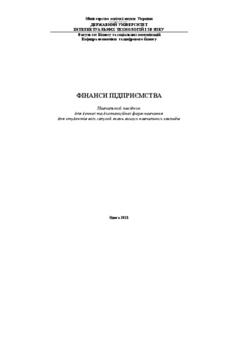 Петрашевська А.Д., Petrashevska A.D. and Новицька С.С., Novitska S.S. and Орлов В.М., Orlov V.M. and Колонтай С.М., Kolontay S.M. and Сотниченко Л.Л., Sotnychenko L.L. and Орлова О.В., Orlova O.V. and Задерей А.Є., Zaderey A.E. (2021) Фінанси підприємства: навч. посіб. для студентів всіх галузей знань вищих навчальних закладів = Corporate Finance: a textbook for students of all fields of knowledge in higher education institutions. Одеса: ДУІТЗ.