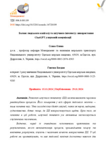 Сєнько О.В., Sienko O.V. and Гнатюк Б., Gnatyuk B. (2024) Баланс людського капіталу та штучного інтелекту: використання ChatGPT у науковій комунікації = The Balance of Human Capital and Artificial Intelligence: Using ChatGPT in Scientific Communication. Zenodo.