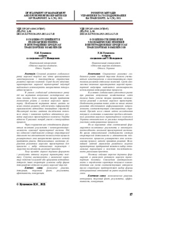 Кузьменко К.М., Kuzmenko K.M. (2021) Особливості прийняття економічних рішень в інтеграційних процесах транспортних комплексів = Peculiarities of making economic decisions in the integration processes of transport complexes. Розвиток методів управління та господарювання на транспорті: Зб. наук. праць. Том 3 №76, 2021. С 18-28..