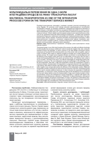 Кузьменко К.М., Kuzmenko K.M. (2023) Мультимодальні перевезення як одна з форм інтеграційних процесів на ринку транспортних послуг = Multimodal transportation as one of the forms of integration processes in the transport services market. Причорноморські економічні студії: науковий журнал. №81, 2023. С. 58-62..