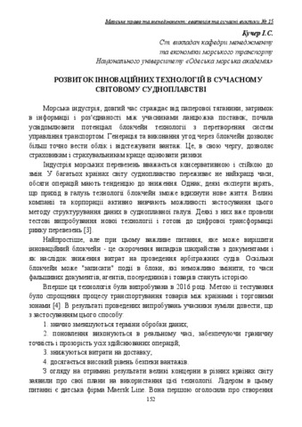 Кучер І.С., Kucher I.S. (2021) Розвиток інноваційних технологій в сучасному світовому судноплавстві = Development of innovative technologies in modern global shipping. Морське право та менеджмент: еволюція та сучасні виклики: Матеріали XV Міжнародної науково-практичної конференції НУ «ОМА». – Одеса: НУ «ОМА», 2021.