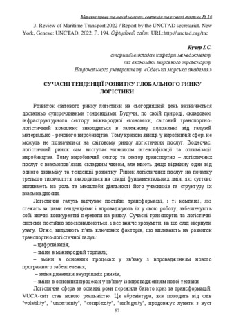 Кучер І.С., Kucher I.S. (2023) Сучасні тенденції розвитку глобального ринку логістики = Current trends in the development of the global logistics market. Морське право та менеджмент: еволюція та сучасні виклики: Матеріали XVІ Міжнародної науково-практичної конференції НУ «ОМА». – Одеса: НУ «ОМА», 2023.