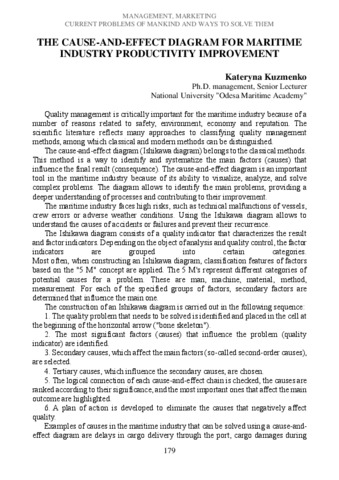 Кузьменко К.М., Kuzmenko K.M. (2024) The Cause-and-Effect Diagram for Maritime Industry Productivity Improvement = Діаграма причинно-наслідкових зв'язків для підвищення продуктивності морської галузі. Current problems of mankind and ways to solve them. Materials XIV International scientific and practical conference, December 2-4, 2024, Munich, Germany..