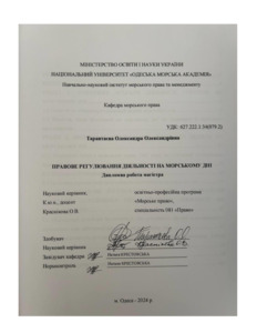 Тарантаєва, Олександра (2024) Правове регулювання діяльності на морському дні. [Кваліфікаційна (дипломна) робота]