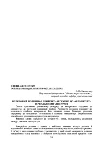 Статтю присвячено рекламному дискурсу, де використано «аргумент до авторитету» як потужний впливовий прийом. Розглянуто механізм принципу дії зазначеного прийому, виокремлено його впливові ознаки. Виявлено різновиди «аргументу до авторитету»: особистості й символи «авторитету». Запропоновано класифікацію різновидів «аргументу до авторитету».