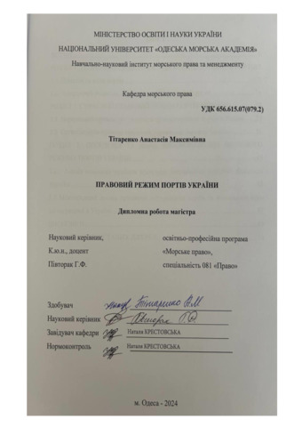 Тітаренко, Анастасія (2024) Правовий режим портів України. [Кваліфікаційна (дипломна) робота]