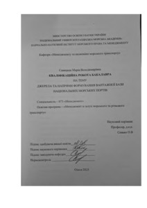Савицька, Марія (2025) Джерела та напрями формування вантажної бази національних морських портів. [Кваліфікаційна (дипломна) робота]