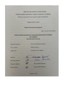 Чорний, Олександр (2024) Міжнародно-правове регулювання морських наукових досліджень. [Кваліфікаційна (дипломна) робота]