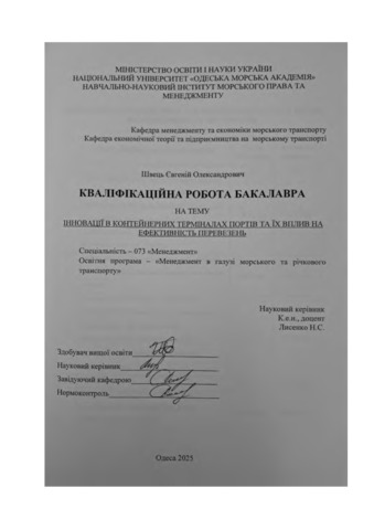 Швець, Євгеній (2025) Інновації в контейнерних терміналах портів та їх вплив на ефективність перевезень. [Кваліфікаційна (дипломна) робота]