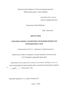 Омельченко Т. Ю., Omelchenko Т. Yu. (2018) УДОСКОНАЛЕННЯ АЛГОРИТМІВ УПРАВЛІННЯ ПРОЦЕСОМ РОЗХОДЖЕННЯ СУДЕН = Perfection of algorithms process control of divergence by the ships. Doctoral thesis, НУ ОМА.
