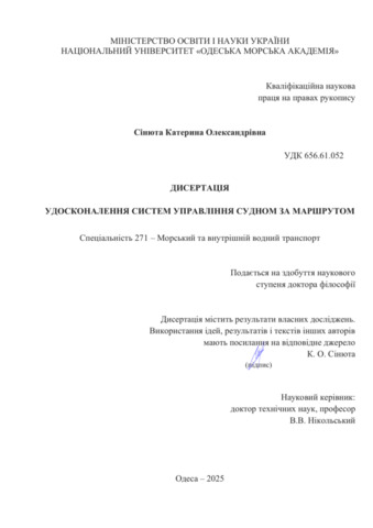 Сінюта К. О., Siniuta K. O. (2025) УДОСКОНАЛЕННЯ СИСТЕМ УПРАВЛІННЯ СУДНОМ ЗА МАРШРУТОМ = Improvement of ship control systems along the route. Doctoral thesis, НУ ОМА.